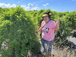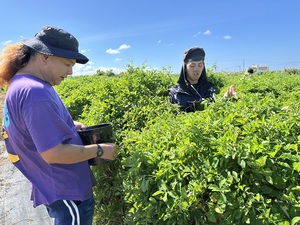 弁当配達の帰り道、からはーいの利用者さん達が暑い中、頑張っている花摘み作業に