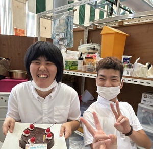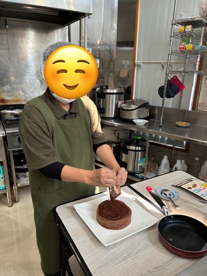 利用者Hさんにお誕生日ケーキを焼いてもらい